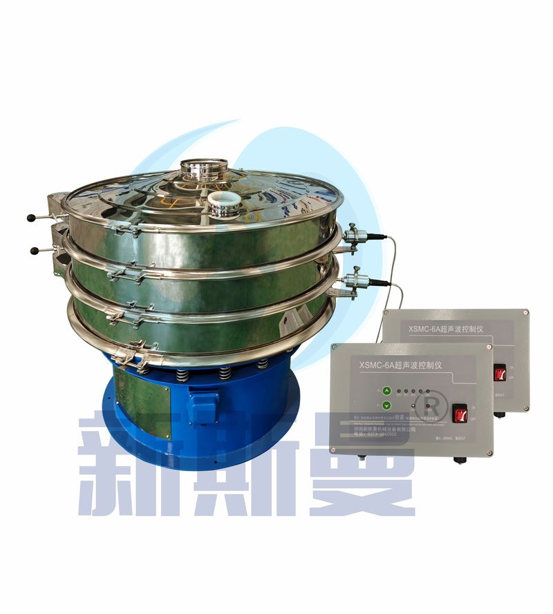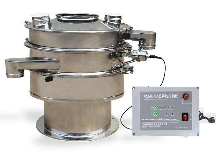 超聲波振動(dòng)篩是在旋振篩的基礎(chǔ)上引入了超聲波清網(wǎng)裝置,通過(guò)將220V、50Hz或110V、60Hz電能轉(zhuǎn)化為18KHz的高頻電能,輸入超聲換能器,將其變成18KHz機(jī)械振動(dòng),從而達(dá)到高篩分和迅速清網(wǎng)的目的,使超微細(xì)粉篩分成為易事。該系統(tǒng)在傳統(tǒng)的振動(dòng)篩基礎(chǔ)上在篩網(wǎng)上引入一個(gè)低振幅、高頻率的超聲振動(dòng)波(機(jī)械波),以改善超微細(xì)粉體的篩分性能。特別適合高附加值精細(xì)粉體的用戶使用。超聲波篩分系統(tǒng)是一種簡(jiǎn)單實(shí)用、可靠的篩分系統(tǒng),是當(dāng)前網(wǎng)孔堵塞的有效的解決方法??蓮V泛應(yīng)用于制藥、冶金、化工、選礦、食品等要求精細(xì)篩分過(guò)濾的行業(yè),篩分過(guò)濾精度高,有效解決因團(tuán)聚、靜電、強(qiáng)吸附性卡堵網(wǎng)孔等篩分難題,是國(guó)內(nèi)篩分行業(yè)的一項(xiàng)重大技術(shù)突破。