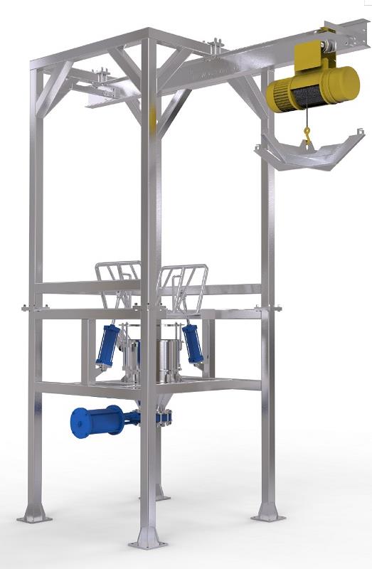 起重設(shè)備:自身攜的帶起重設(shè)備將大袋(噸袋)吊裝到卸料機的機架上,不需用外界的幫助。