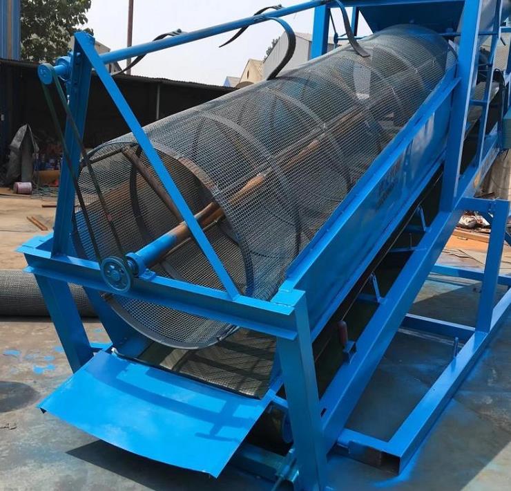 當(dāng)物料進(jìn)入重型滾筒篩內(nèi)部篩網(wǎng)時,由于滾筒裝置的傾斜與轉(zhuǎn)動,使篩面上的物料翻轉(zhuǎn)與滾動,使合格物料(篩下產(chǎn)品)經(jīng)滾筒外圓的篩網(wǎng)排出,不合格的物料(篩上產(chǎn)品)經(jīng)滾筒末端排出。由于物料在滾筒內(nèi)的翻轉(zhuǎn),滾動,使卡在篩孔中的物料可被彈出,防止篩孔堵塞。