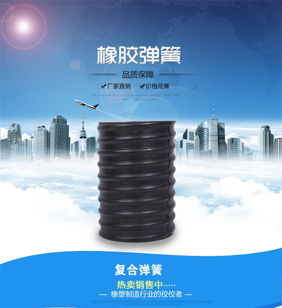 咨詢熱線:15537323577 復(fù)合彈簧:是由金屬螺旋彈簧和橡膠復(fù)合在一起的園筒狀彈性體。該產(chǎn)品優(yōu)于金屬彈簧,具有抗腐蝕性好、壽命長等優(yōu)點(diǎn),與其它彈簧相比,減振能力強(qiáng),緩沖效果好。
