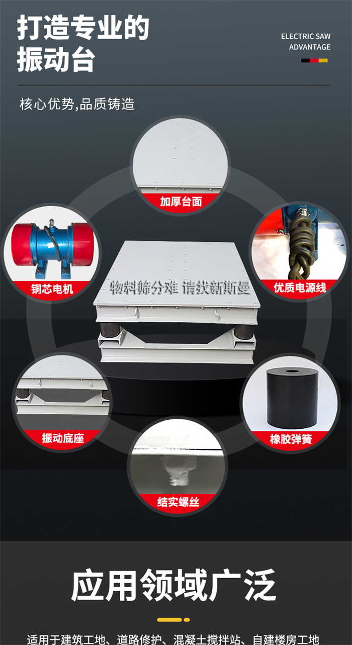 被廣泛應(yīng)用于試驗室、現(xiàn)場工地作試件成型和預(yù)制構(gòu)件震實各種板柱、梁等混凝土構(gòu)件振實成型,