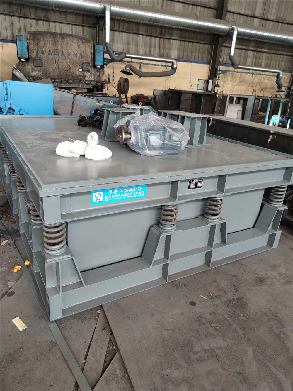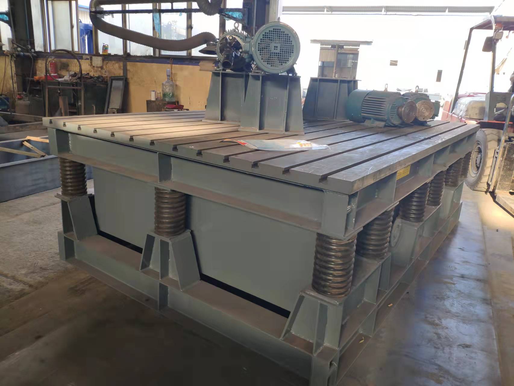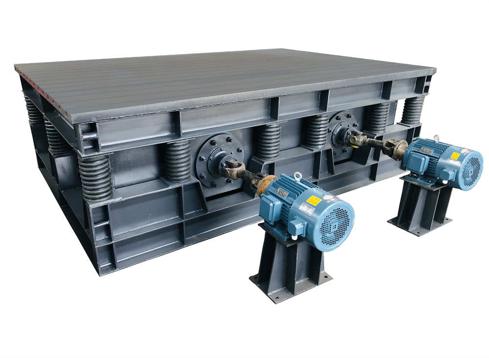 主要包括機(jī)座,平臺殼體,安裝在殼體內(nèi)的若干個激振箱,貫穿激振箱的傳動軸,激振器,驅(qū)動電機(jī),變頻控制裝置,減震彈簧等。