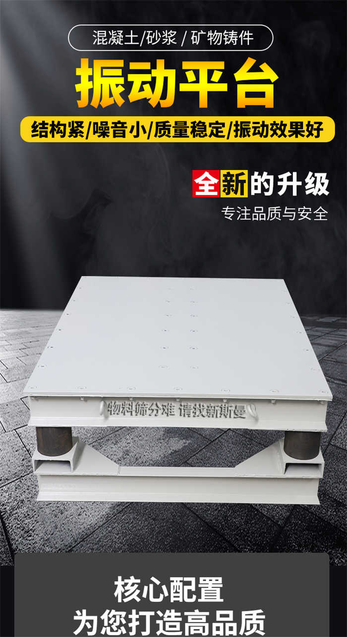 振動平臺又名振實(shí)臺,主要用于物料的振實(shí),削減物料內(nèi)的空氣和縫隙,通常和料倉配套運(yùn)用。