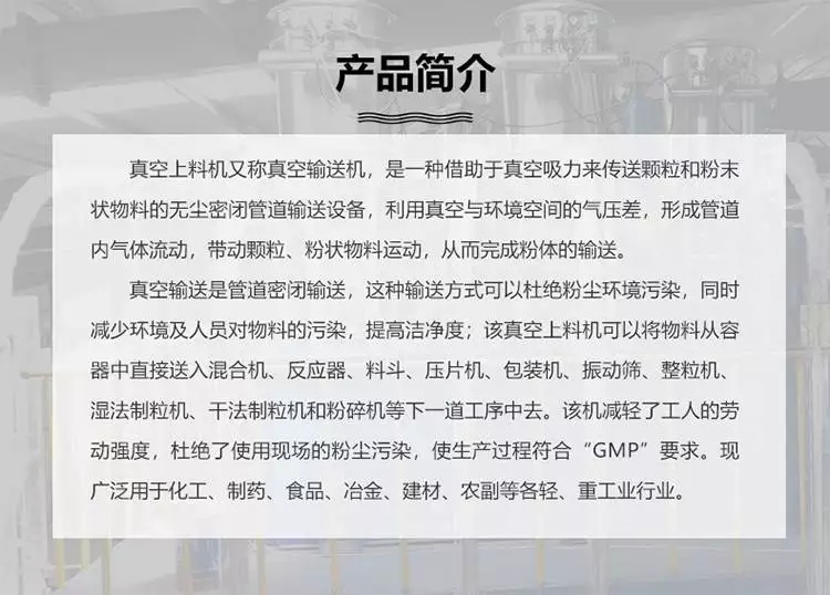 ZKS系列真空上料又稱真空輸送機(jī),是通過氣體產(chǎn)生真空輸送粉體料的設(shè)備,是氣體輸送的一種。適用于醫(yī)藥、食品、化工、冶金、建材等多個行業(yè),針對各種粉體物料的密閉輸送,提高物料的潔凈度,能滿足不同客戶的多種輸送需要。