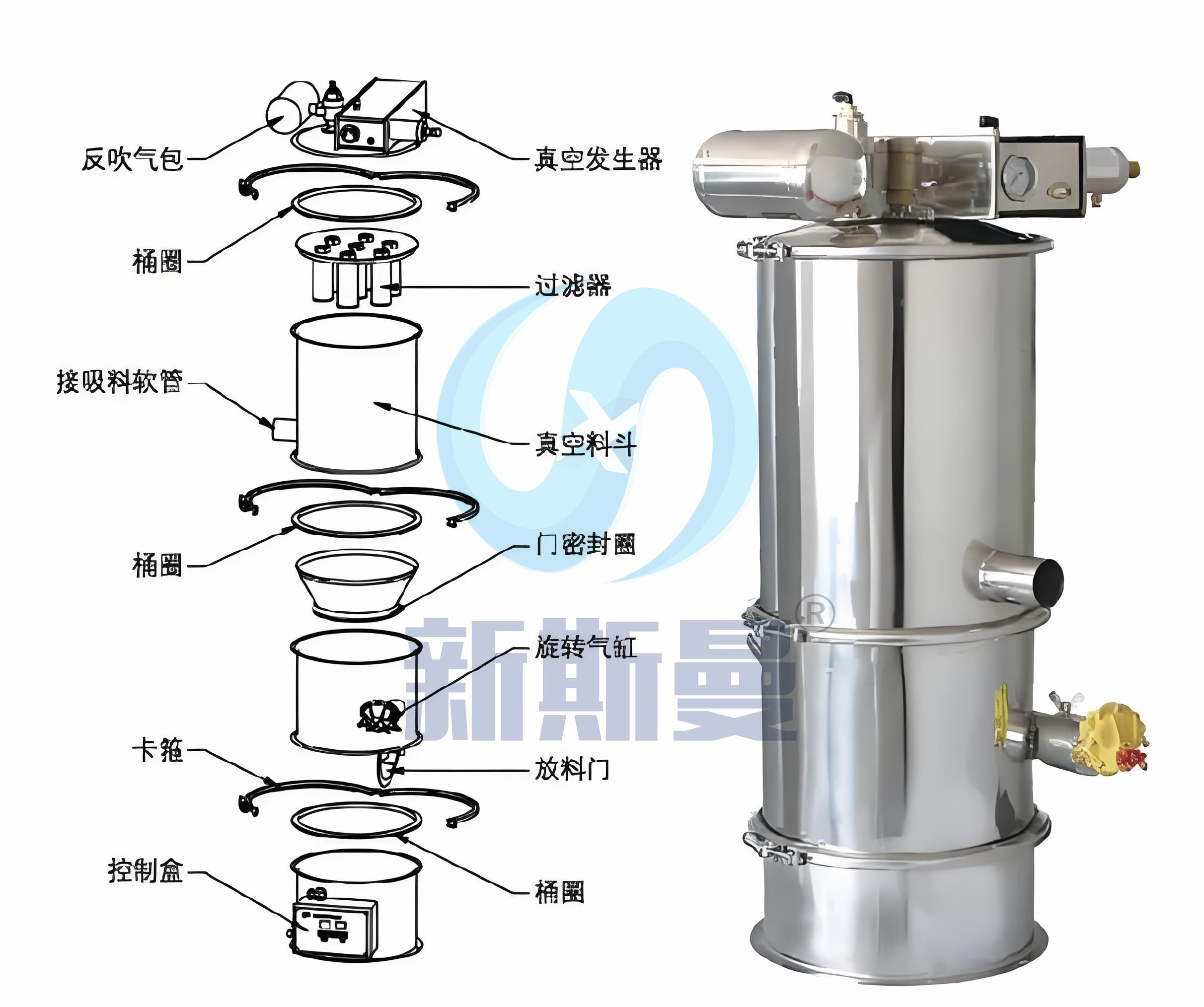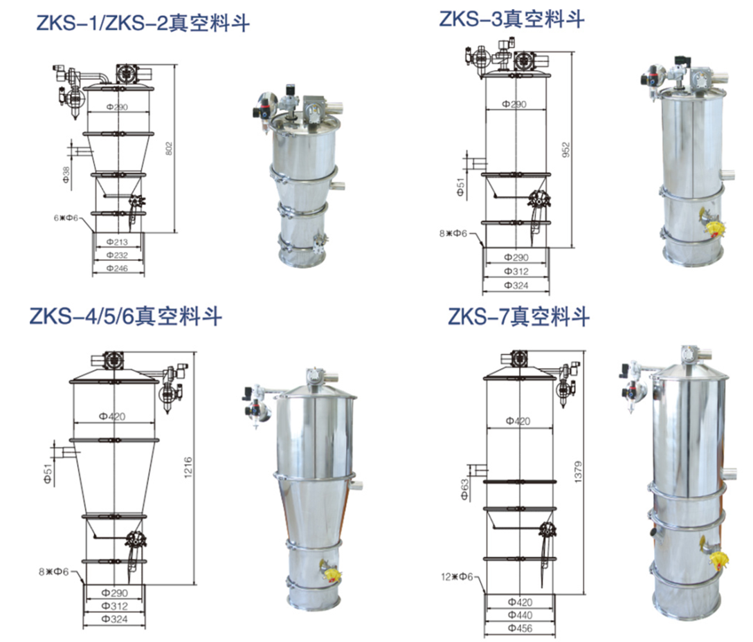 ZKS系列真空上料又稱真空輸送機(jī),是通過氣體產(chǎn)生真空輸送粉體料的設(shè)備,是氣體輸送的一種。