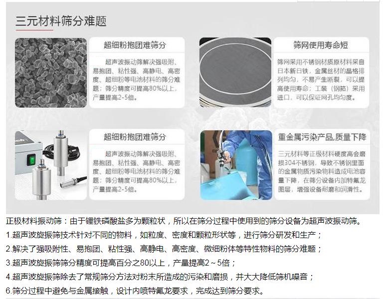 超聲波振動篩已成功應(yīng)用于碳化硅(325-500目)、電磁粉、負極材料、激光粉、碳粉、粉末涂料、合金粉末、鉬粉、不銹鋼粉、鎢粉、鈷粉、鎳粉、石英粉、麥芽粉、孢子粉等的篩分。